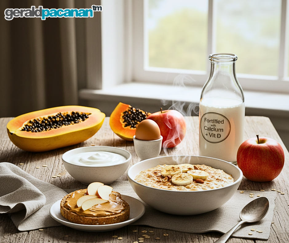Dr. Gerald Pacanan emphasizes the importance of beginning each day with a wholesome breakfast. After a night of fasting, both mother and baby need a healthy source of energy to function optimally. He recommends whole grains such as oatmeal or brown rice porridge for a slow, steady release of energy. Adding protein from boiled eggs, yogurt, or whole-grain toast with peanut butter supports muscle and tissue development. A serving of fruit like banana, papaya, or apple provides natural vitamins and fiber, while milk fortified with calcium and vitamin D strengthens bones and teeth. Dr. Pacanan advises expectant mothers never to skip breakfast, as it can lead to dizziness, fatigue, and low blood sugar levels.